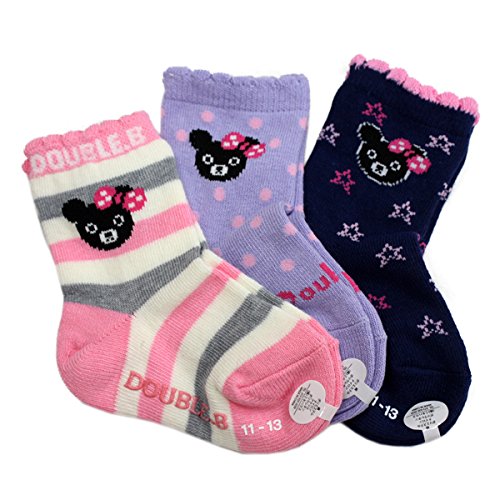 ミキハウス(mikihouse) ダブルB(DOUBLE_B) クルーソックスパック 3足セット 赤ちゃんやベビーキッズ用 64-9612-785 (17cm~19cm, マルチ)