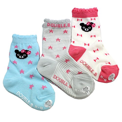 ダブルB(mikihouse) 3Pソックスパック 靴下 (13-15cm, クルー-白(01))