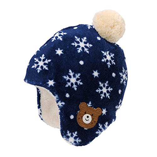 ホットビスケッツ(mikihouse) 雪の結晶フリースフード(帽子)〈S(46cm-52cm)〉 紺(03)