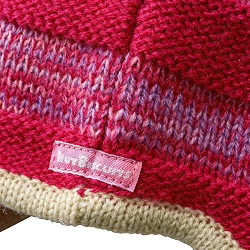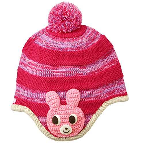 ミキハウスホットビスケッツ(mikihouse hotbiscuits) 編みモチーフ付ぼん天ボーダーフード(帽子)フリー(48cm-52cm)〉 ローズ(14)