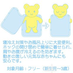 ホックの開け閉めで簡単に着せられ、肩やお腹が冷えるのを防ぎます