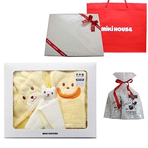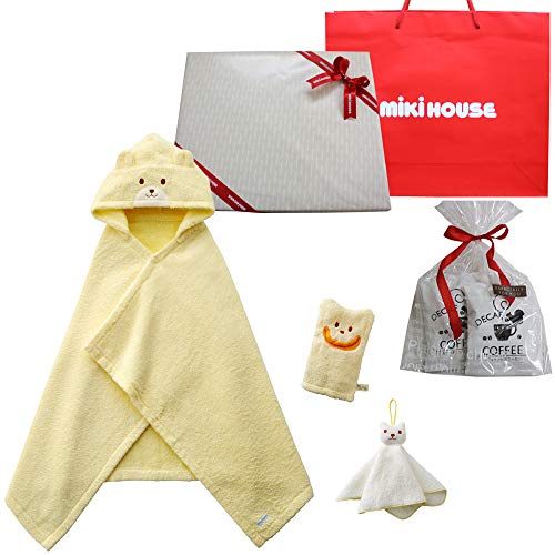 ミキハウスファースト(MIKIHOUSE) ベビーバスポンチョ 出産お祝セット 新生児から2歳くらいまで, 黄(リボンラッピング包装済み)+オリジナルデカフェセット