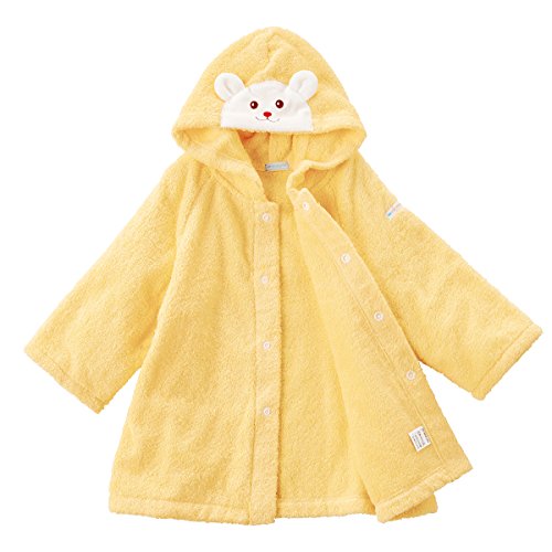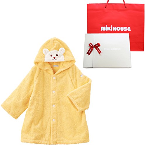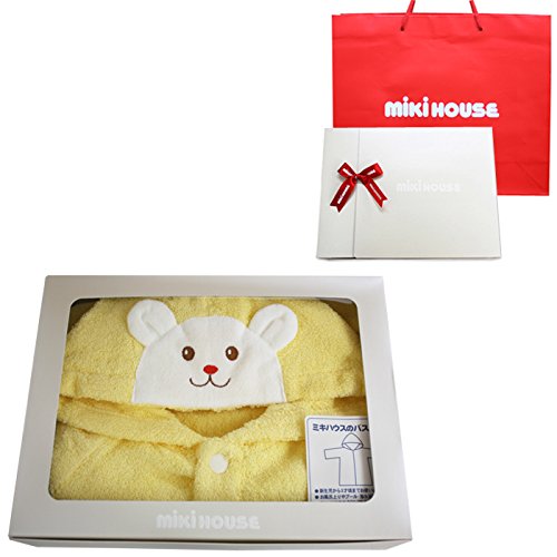 ミキハウス ベビー (mikihouse) くまちゃんスマイル ベビーバスローブ (フリー(70-90cm), イエロー(リボンラッピング包装済))