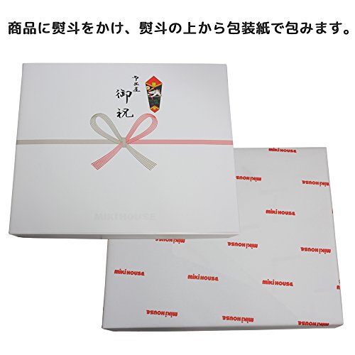 こちらの商品は箱入りで、「御出産御祝」熨斗が内熨斗として包装済品となります。ミキハウス 紙袋も同送させて頂きます。