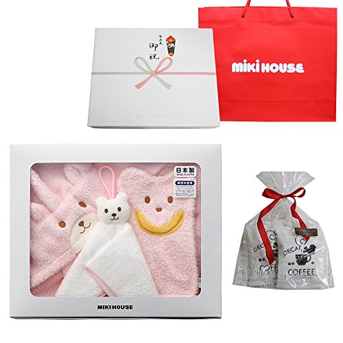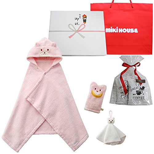 ミキハウス ベビーバスポンチョ 出産お祝セット ピンク(御出産御祝のし包装済み)+オリジナルデカフェセット