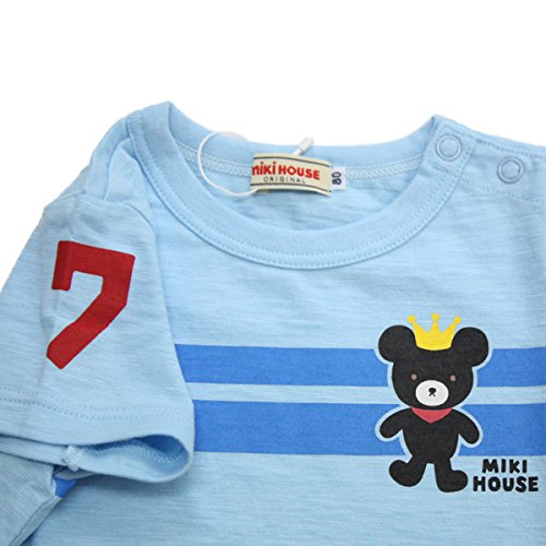 ミキハウス(mikihouse) キングくんプリント 半袖Tシャツ (90cm, ブルー(ボーダーワンポイント))