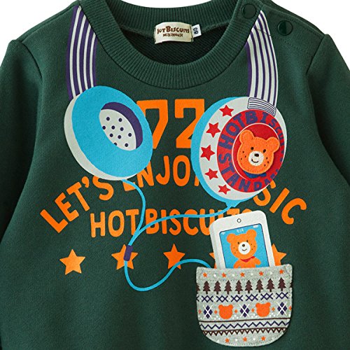 ミキハウスホットビスケッツ(mikihouse hotbiscuits) ヘッドホン フェイクプリントトレーナー 80cm グリーン(07)