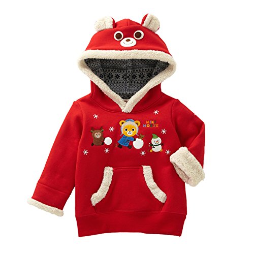 ミキハウス(mikihouse) プッチー&うさこ お顔フード付き雪あそびトレーナー (120cm, 赤(02))