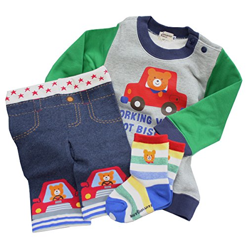 ミキハウスホットビスケッツ (mikihouse hotbiscuits)トレーナー+スパッツ+ソックス3点セット (80cm・グレー)