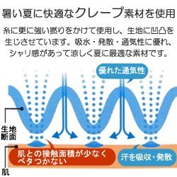 暑い夏に快適な『クレープ』素材を使用しているので、肌との接触面積が少なくべとつきません。