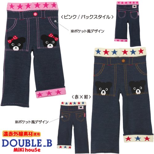 DOUBLE.B ダブルB(mikihouse)ポッケにベア&ベアガール★ぽかぽか素材の10分丈スパッツ 80cm 赤×紺(42)