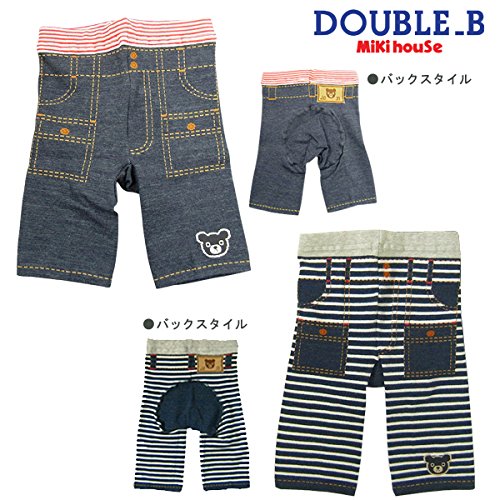 ダブルB(mikihouse) モンキーパンツ風8分丈スパッツ 90cm 紺×白(51)