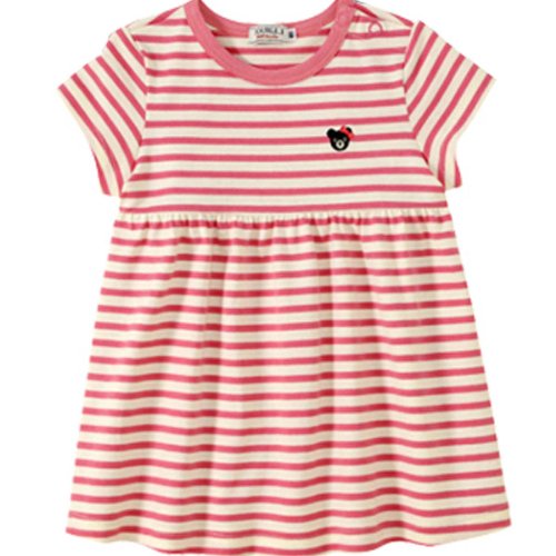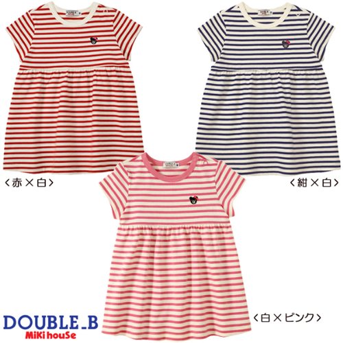ダブルB(MIKIHOUSE) EverydayDouble_B ボーダー半袖ワンピース 120 白×ピンク(72)