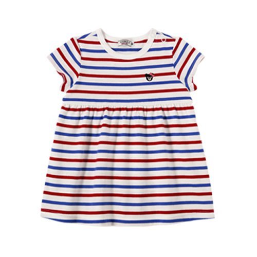 ダブルB(MIKIHOUSE) EverydayDouble_B ボーダー半袖ワンピース (90cm, 赤×紺(42))