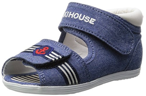 ダンガリー素材が涼しげなデザインのベビーサンダルです。