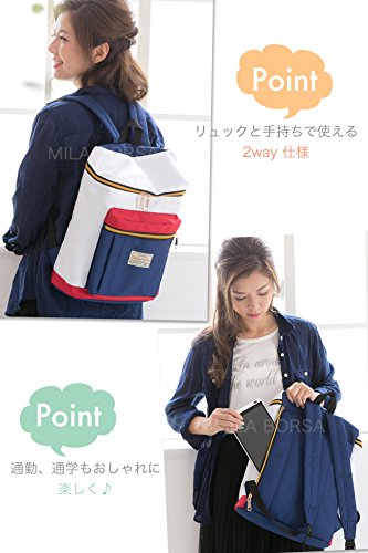 MILA BORSA(ミラボルサ) リュック レディース ネイビー&ホワイト