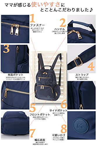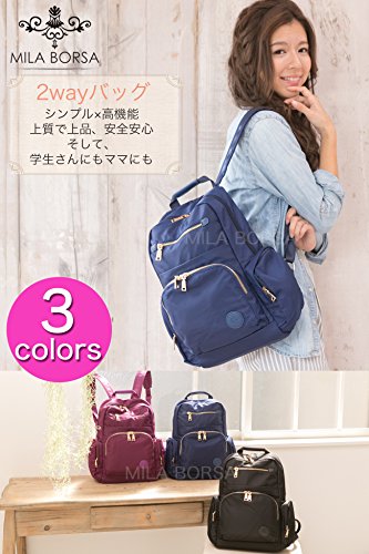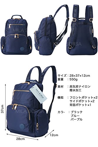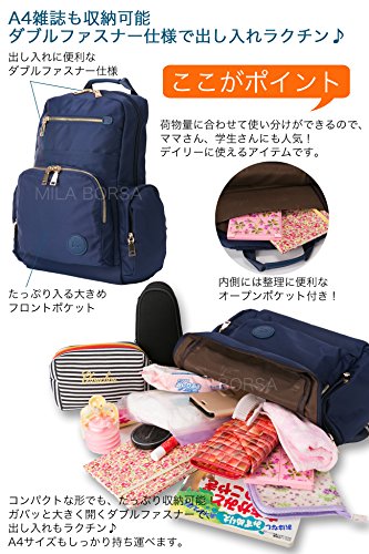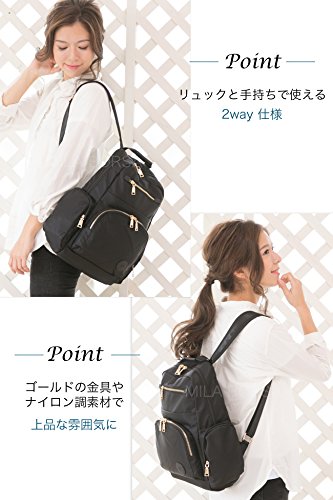 MILA BORSA 【収納ポケット豊富】 リュック レディース マザーズリュック マザーズバッグ 通学 通勤 バックパック ナイロン 撥水 (01 Aタイプ‐ブラック)