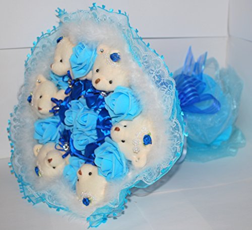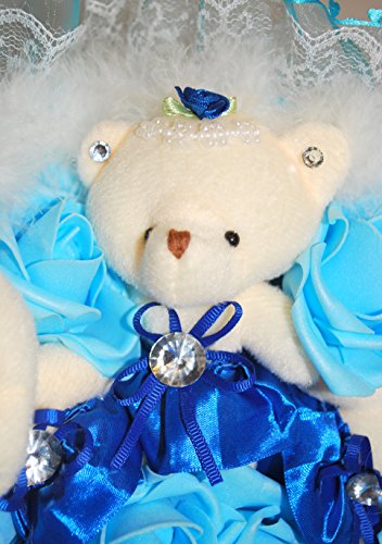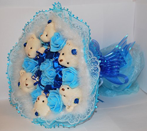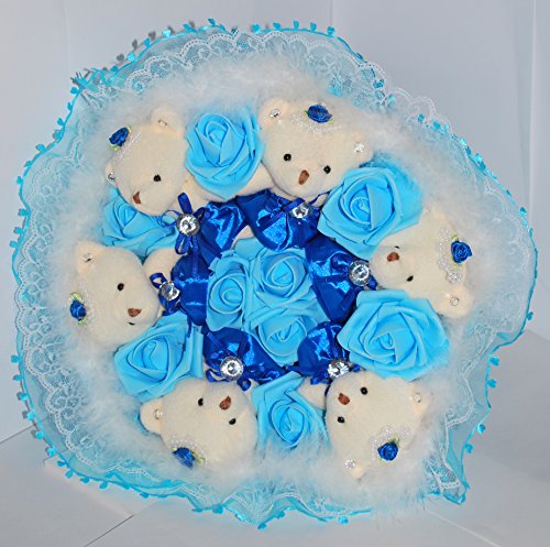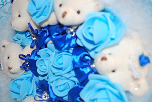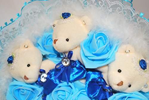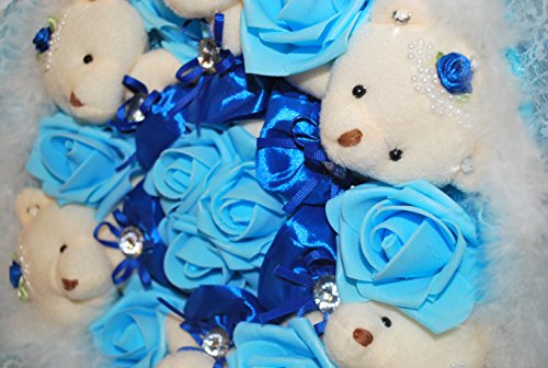 花束 ベア クマ 熊 ブーケ 造花 ぬいぐるみ 出産 祝い 誕生日 結婚 記念日 プロポーズ ギフト (ブルー)