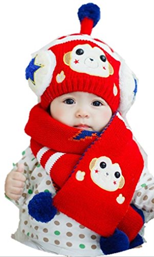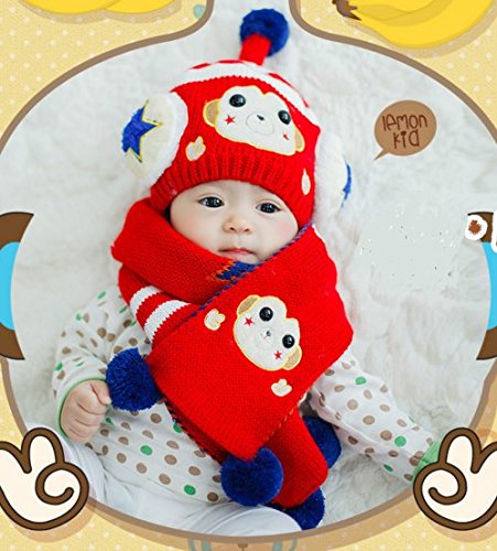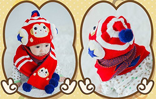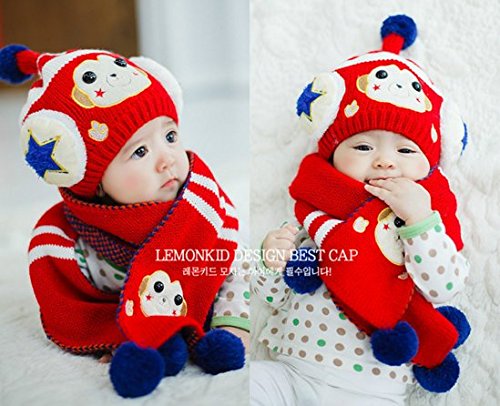 (セドン) Cedon ベビー キッズ 帽子 マフラー セット 冬 あたたか かわいい 防寒 ニット帽 選べる7カラー (レッド)
