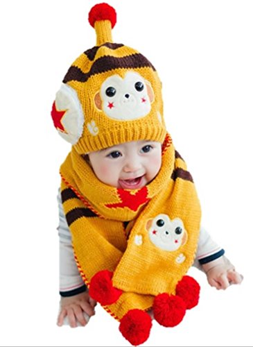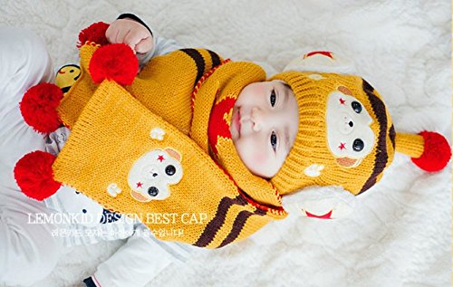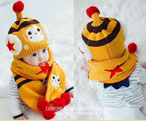 (セドン) Cedon ベビー キッズ 帽子 マフラー セット 冬 あたたか かわいい 防寒 ニット帽 選べる7カラー (イエロー)