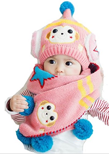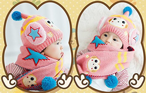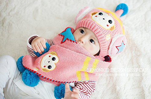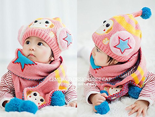 (セドン) Cedon ベビー キッズ 帽子 マフラー セット 冬 あたたか かわいい 防寒 ニット帽 選べる7カラー (ピンク)