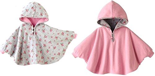 リバーシブル フード 付き パーカー 男の子 女の子 兼用 キッズ ベビー ポンチョ 出産祝い プレゼント (ピンク 100cm)