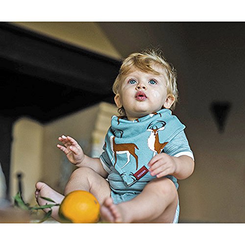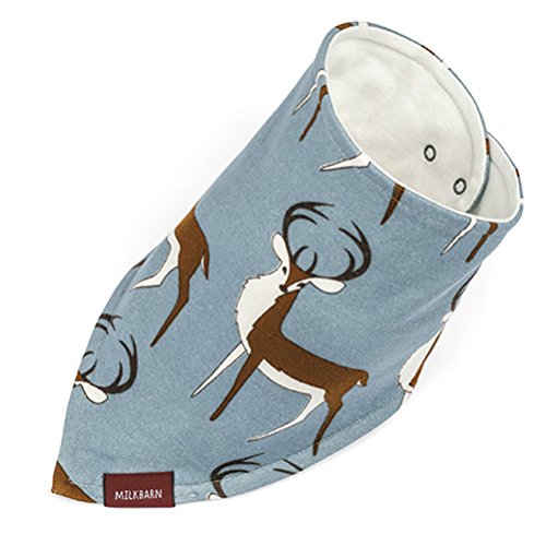 お洒落なカチーフタイプのスタイです。 バンダナを巻いたみたいに、とってもクール。 厚手の生地は、ミルクの飲みこぼしやたくさんのよだれもしっかり吸収します。 MILKBARNの100%オーガニックコットンはオーガニック・テキスタイルの世界基準「GOTS(Global Organic Textile Standard)」の認証を受けている、お肌に優しく質の良い安心安全コットンです。 サラサラのやわらかい触り心地で、よだれや授乳のときに何度も拭くため敏感になりやすいお口周りにも優しく、ベビーが自分でお口に入れても安心です。 ベビーがひっぱっても外れにくいスナップボタンは2段階で首周りの調整が可能。 たくさん出てしまうよだれや、食べこぼし飲みこぼしも余裕で口元を拭いてあげられる、大きめサイズです。