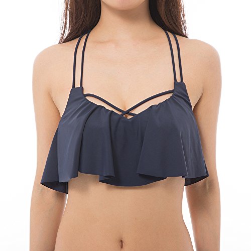 リーフ柄がリゾート感を漂わせるシンプルフリルビキニ!!バックスタイルはクロシェ編みになっており、さらにバックフリルになっておりどの角度から見てもオシャレ度の高いアイテム。胸元のカットデザインもセクシーかつ可愛らしさを演出してくれます♪今年トレンドの大きめフリルなので、ウエストラインが細く見えて、スタイルアップ間違い無しの1着です!!
