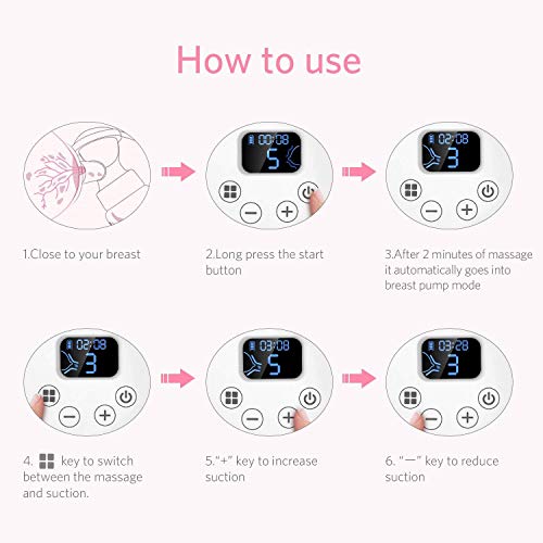 - ☺5レベルのマッサージモードは、母親がより良い泌乳をするのに役立ちます。小さな吸引力で吸引頻度と放出頻度が比較的速くなり、胸部を刺激して牛乳を産む。その後、ミルクを吸うために1〜9のポンプレベルを容易に提供し、異なるミルクポンプの要求を満たす。