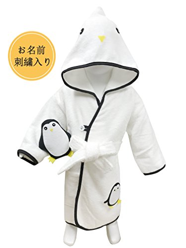名入れ刺繍 MINERVA のしの貼付はご対応可能 ペンギン 子供バスローブ &ぬいぐるみ ギフトセット フード、固定型のベルト、ポケット付き ボダン留め 高感度ハシマ二頭検針 安心安全 タオル地 着心地良い 100%Virgin Cotton (名入れ L)