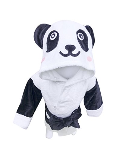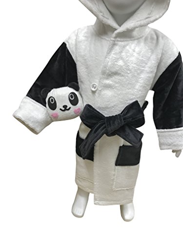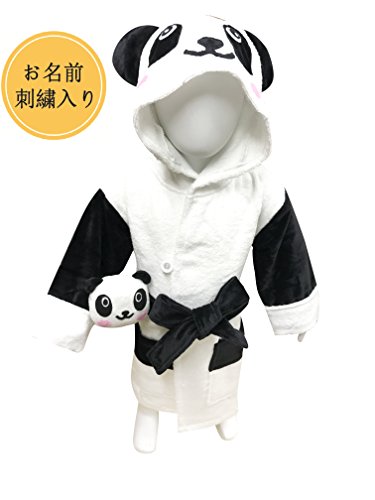名入れ刺繍 MINERVA 白黒 パンダ 子供バスローブ &ぬいぐるみ ギフトセット フード、固定型のベルト、ポケット付き ボダン留め 高感度ハシマ二頭検針 安心安全 タオル地 着心地良い 100%Virgin Cotton (名入れ L)