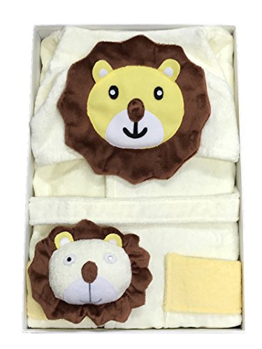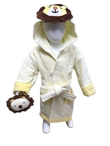 MINERVA ライオン 子供バスローブ & ぬいぐるみ ギフトセット フード、固定型のベルト、ポケット付き ボダン留め 高感度ハシマ二頭検針 安心安全 タオル地 着心地良い S M L 100% Virgin Cotton (M 100-120 (4~6才))