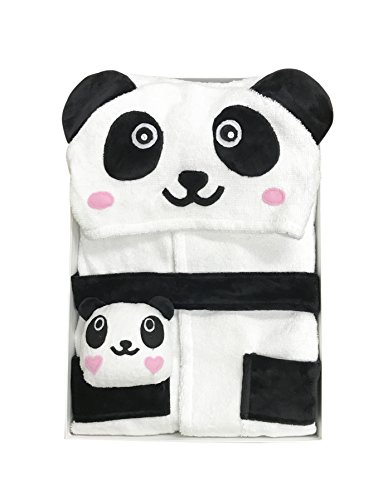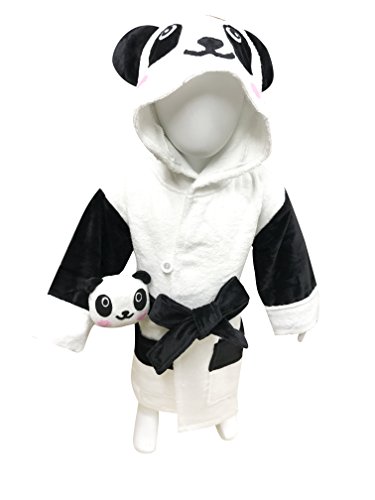 MINERVA 白黒 パンダ 子供バスローブ &ぬいぐるみ ギフトセット 箱入り フード、固定型のベルト、ポケット付き ボダン留め 高感度ハシマ二頭検針 安心安全 タオル地 着心地良い 100% Virgin Cotton (L 120-140 (6~8才))