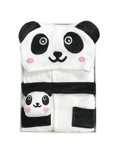MINERVA コスチューム クリスマス 白黒 パンダ 子供バスローブ &ぬいぐるみ ギフトセット 箱入り フード、固定型のベルト、ポケット付き ボダン留め 高感度ハシマ二頭検針 安心安全 タオル地 着心地良い 100%Virgin Cotton (S 90-100 (2~4才))