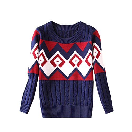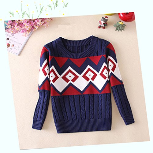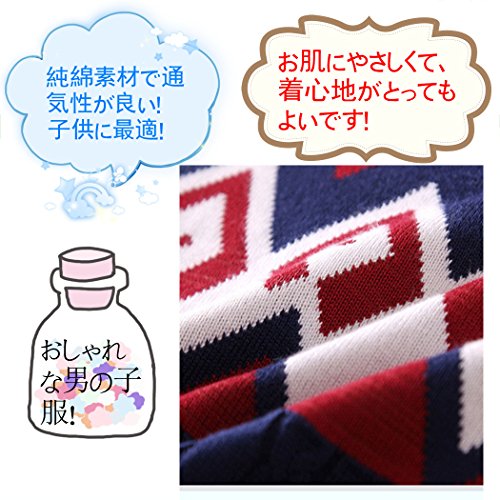 セーター 子供服 キッズ 男の子 トップス 長袖 ボーダー 厚い 暖かい おしゃれ 通学 普段着 通園 XMMSY-JP-101 (110cm, 紺色)