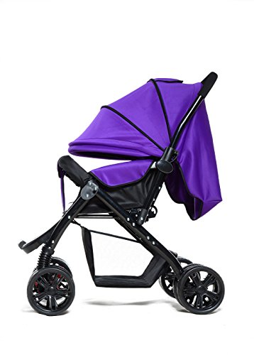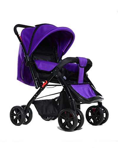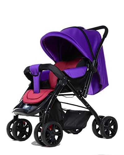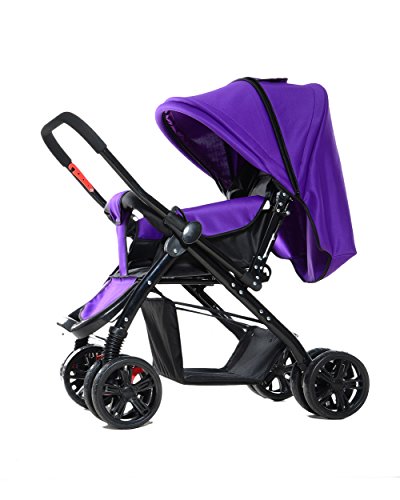 両対面 折りたたみ ハイシート ベビーカー 4輪 通気性の良い (パープル)
