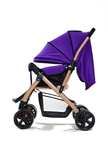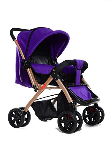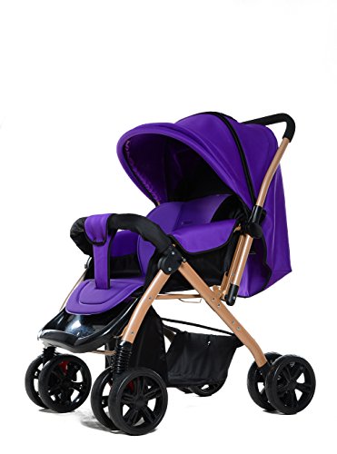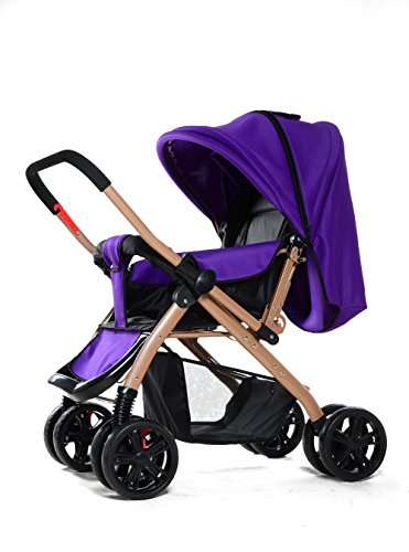 両対面型 ベビーカー ハイシート 折りたたみ ダブルホイール 通気性良い サスペンション機能 ベビーカー (パープル)