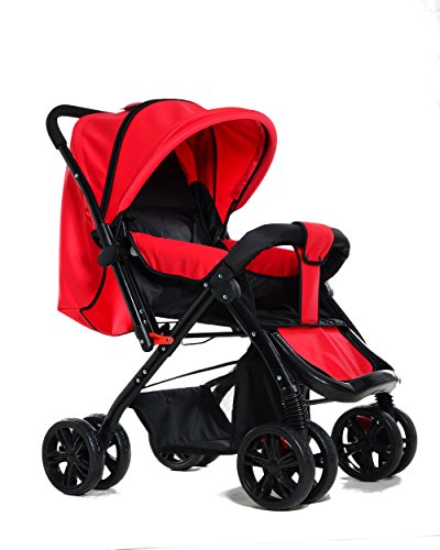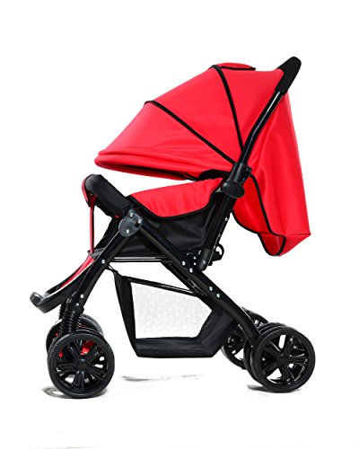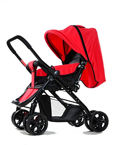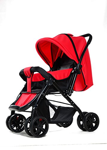 両対面 折りたたみ ハイシート ベビーカー 4輪 通気性の良い (赤い)