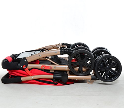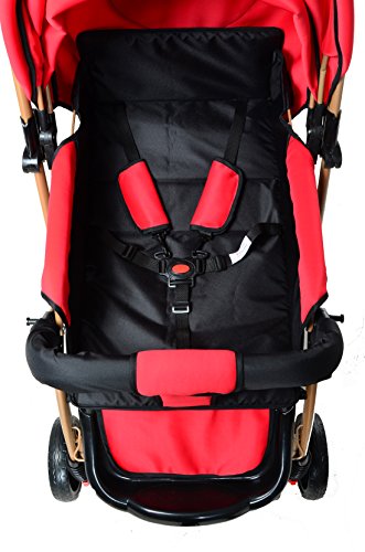 両対面型 ベビーカー ハイシート 折りたたみ ダブルホイール 通気性良い サスペンション機能 ベビーカー (レッド)
