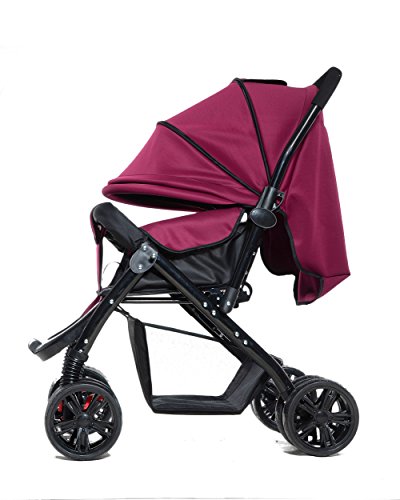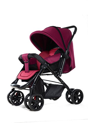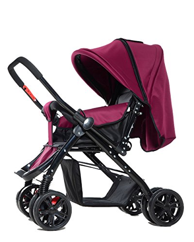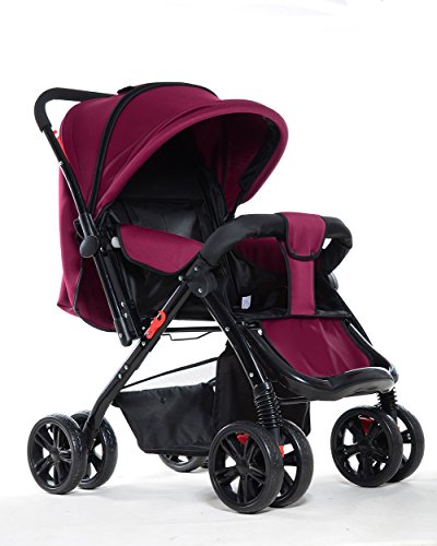 両対面 折りたたみ ハイシート ベビーカー 4輪 通気性の良い (ワインレッド)