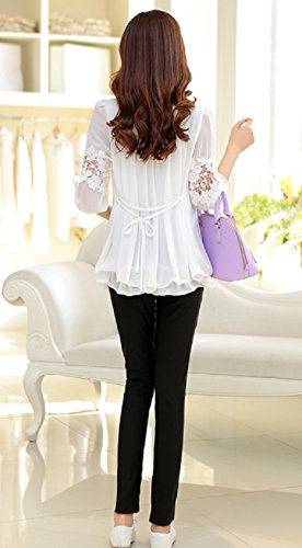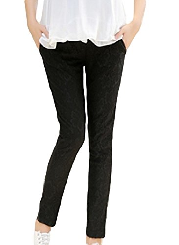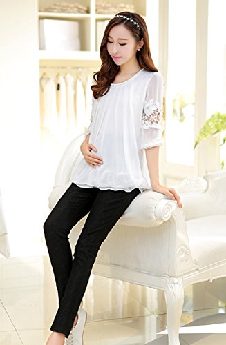 【MINI MAM】 レース リブ付 10分丈 レディース 妊婦 マタニティ ママ M L 黒 水色 桃色 白 伸縮性 授乳服 秋 夏 (L, ブラック)