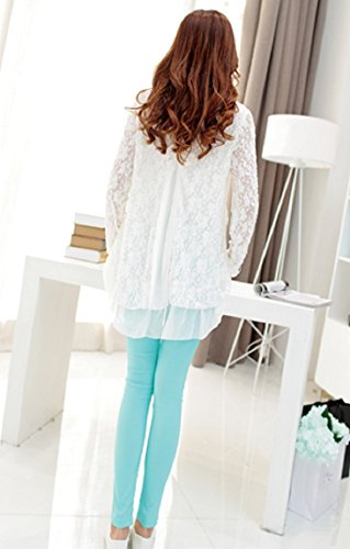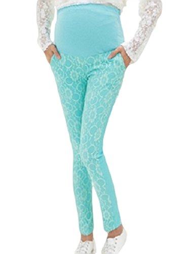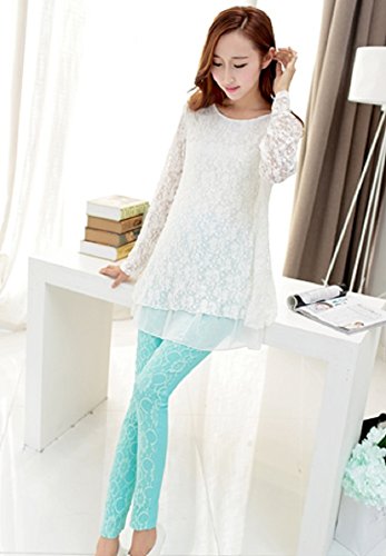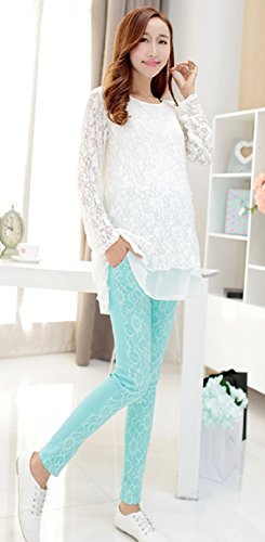 【MINI MAM】 レース リブ付 10分丈 レディース 妊婦 マタニティ ママ M L 黒 水色 桃色 白 伸縮性 授乳服 秋 夏 (L, ライトブルー)