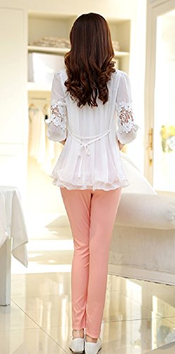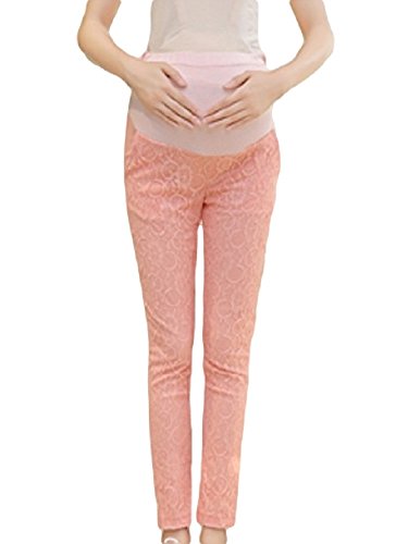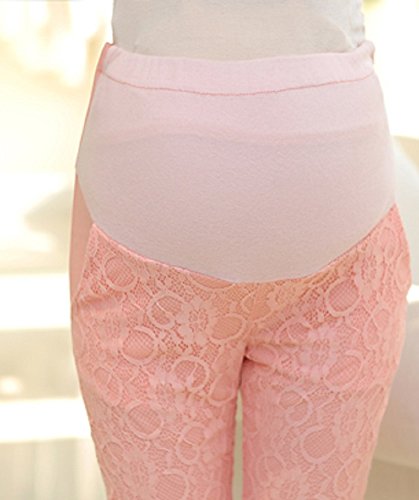 【MINI MAM】 レース リブ付 10分丈 レディース 妊婦 マタニティ ママ M L 黒 水色 桃色 白 伸縮性 授乳服 秋 夏 (L, ピンク)