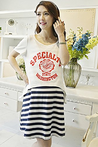 【MINI MAM】 ボーダー柄 重ね着 ワンピース 妊婦 マタニティ レディース ママ L XL ネイビー ホワイト 授乳服 マリン風 大きいサイズ (XL, ホワイト)