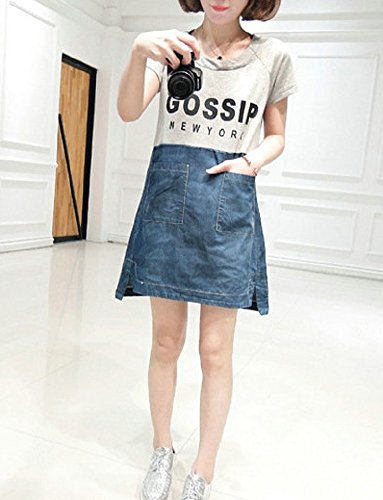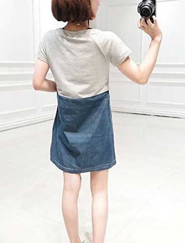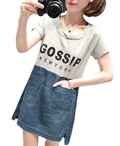 【MINI MAM】 デニム カジュアル バイカラー ワンピース 妊婦 妊娠中 授乳服 ママ レディース M L 黒 灰色 桃色 夏 半袖 スカート (M, グレー)