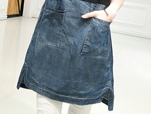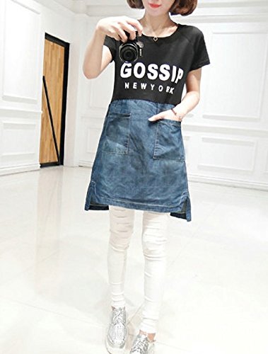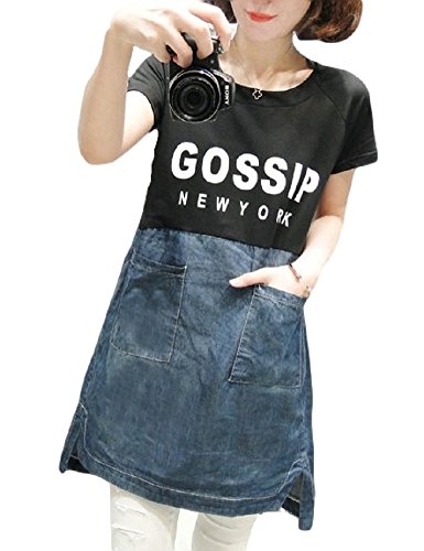 【MINI MAM】 デニム カジュアル バイカラー ワンピース 妊婦 妊娠中 授乳服 ママ レディース M L 黒 灰色 桃色 夏 半袖 スカート (M, ブラック)