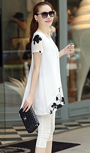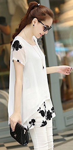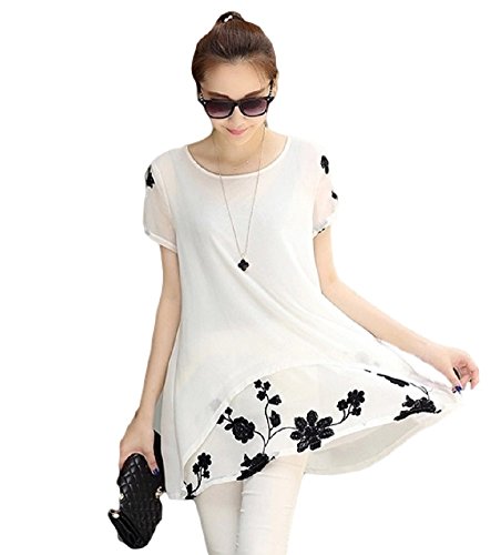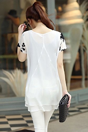 【MINI MAM】 シフォン 花柄 半袖 トップス マタニティ 妊婦 妊娠中 ママ M L 白 黒 セクシー 夏服 チュニック (L, ホワイト)