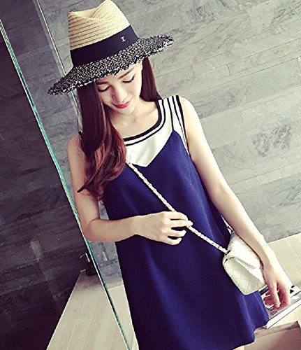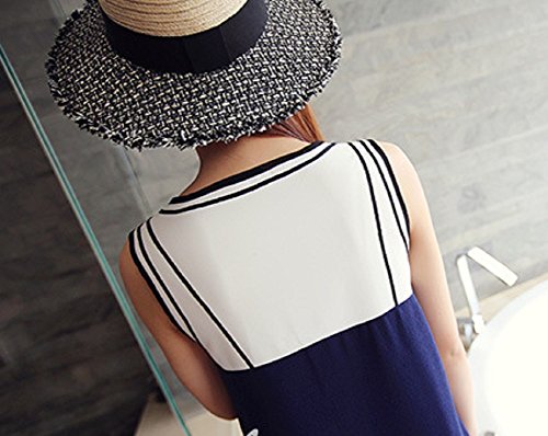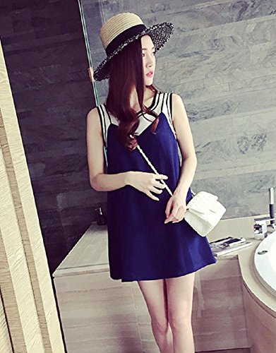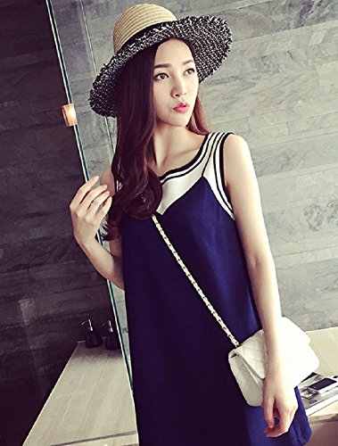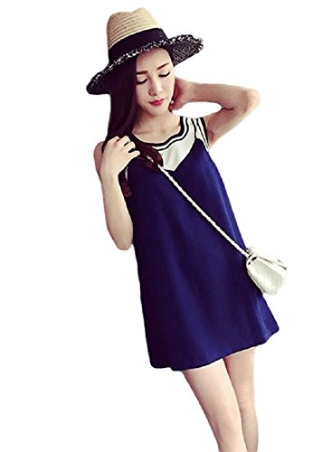 【MINI MAM】 マリン風 袖無 ライン ワンピース 妊婦 妊娠中 マタニティ レディース M L 紺色 白 スカート 夏服 ズボン (L, ネイビー)