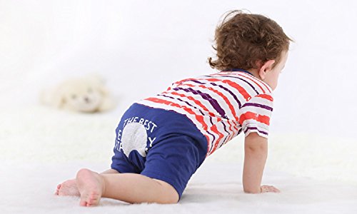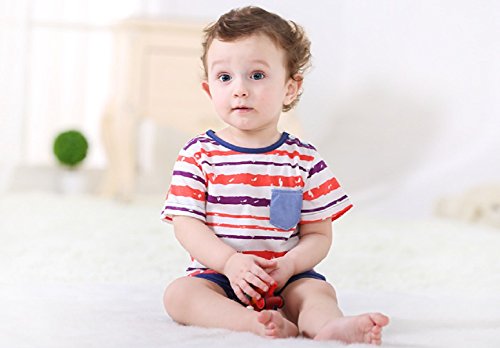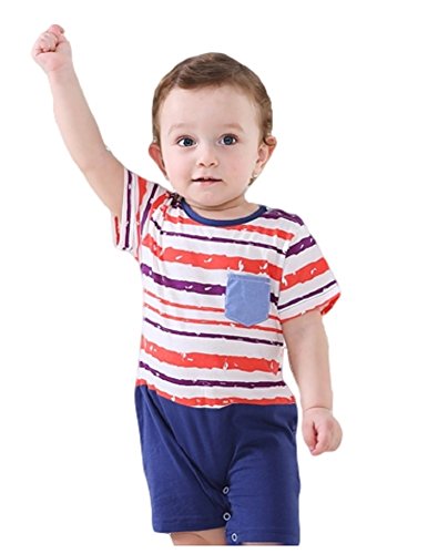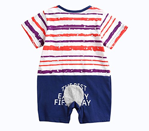 半袖 ロンパース 女の子 男の子 ベビー 73㎝ 80cm 黄色 紺色 夏 ボーダー (80cm, ネイビー)