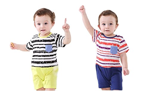 半袖 ロンパース 女の子 男の子 ベビー 73㎝ 80cm 黄色 紺色 夏 ボーダー